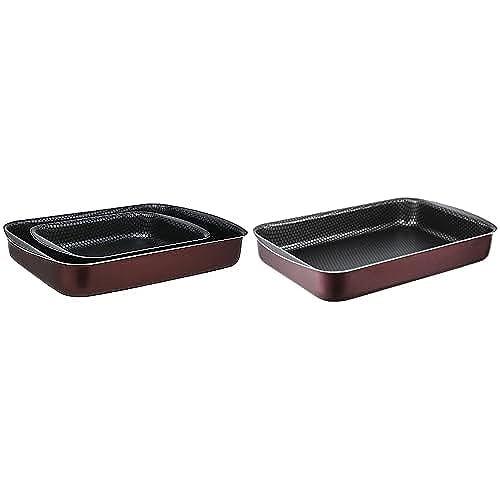 Trueval - طقم كسرولة مستطيلة من تروفال من قطعتين (مقاس 25-35)، بورغندي، صينية فرن مستطيلة من تروفال بلون احمر غامق 40 سم