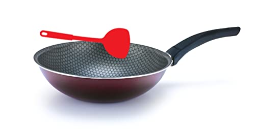 Trueval - طاسة قلي ووك مع قطعة توزيع ملونة من تروفال، لون نبيتي، مقاس 26