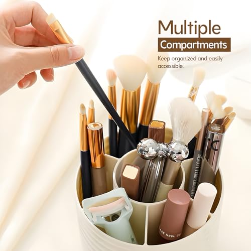 - حامل فرش مكياج متعدد الوظائف، هذا الحامل ليس فقط للفرش! مع مساحة تخزين مقسمة، فهي مثالية لتنظيم أدوات المكياج وأحمر الشفاه وغيرها من أساسيات التجميل الصغيرة، مما يساعدك على الحفاظ على منضدة الزينة الأنيقة والمرتبة.