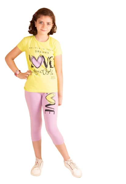 Generic - بيجامة ترنج بناتي اطفال صيفي قطن - تلبس عمر من 6 إلى 12 سنة - لون أصفر ليموني في بينك