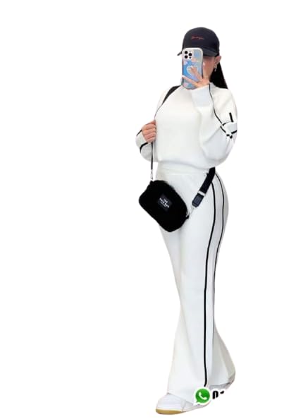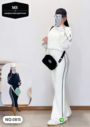 Generic - ترنج كاجوال شتوي قطعتين -مناسب للخروجات خامة تريكو مريح جدا - لون ابيض- مقاس من 60 الي 80 - كود0815