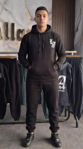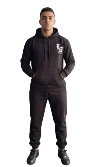 Generic - ترنج رجالي شتوي قطعتين سويت شيرت وبنطلون ميلتون مبطن ثقيل طباعة LA بارزة وتصميم عصري مريح