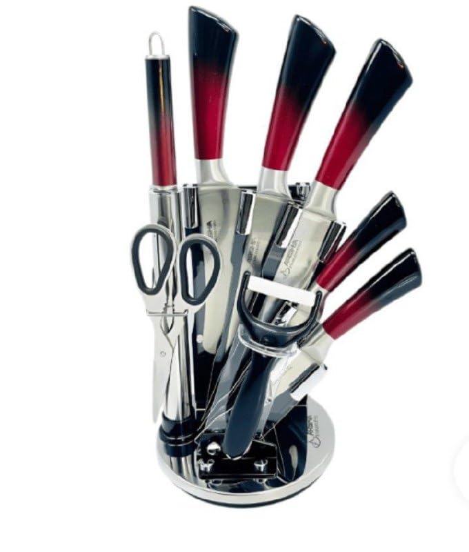 طقم سكاكين 8 قطع بالوان عشوائية واشكال مختلفة مع قاعدة مبتكرة - عملية وانيقة في منتج واحد من تراست ستور
