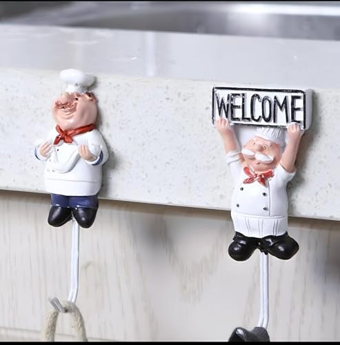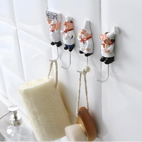 خطاف شيف للمطبخ من تراست ستور - 3 قطع من الشماعات العملية المزخرفة على شكل شيف لطيفة تلتصق بسهولة واناقة