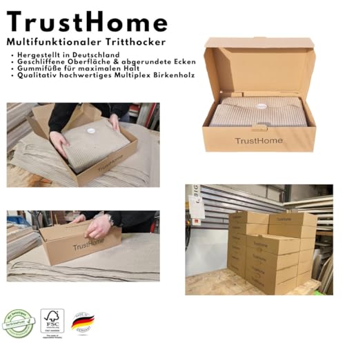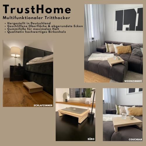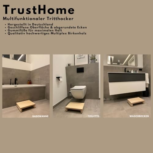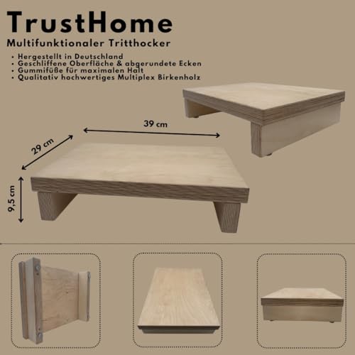 TrustHome - مسند قدم خشبي، مسند للقدمين، يستخدم كعامل مساعد للدخول إلى البانيو/الدش/السرير/الكارافان، متعدد الاستخدامات من الخشب الصلب (خشب البتولا)