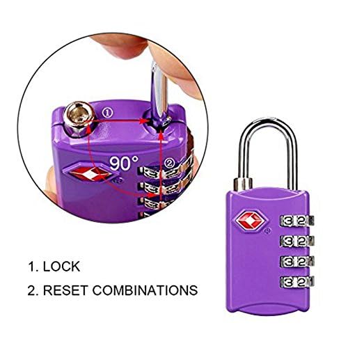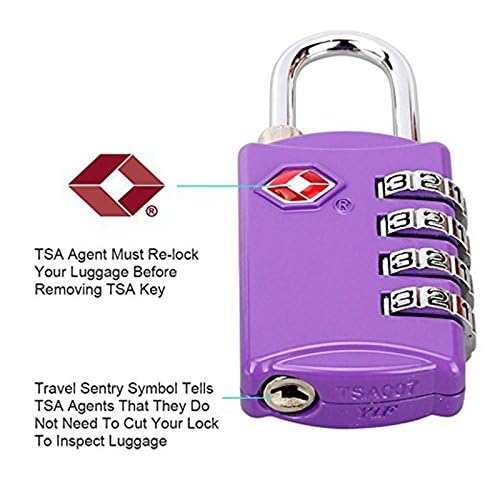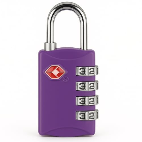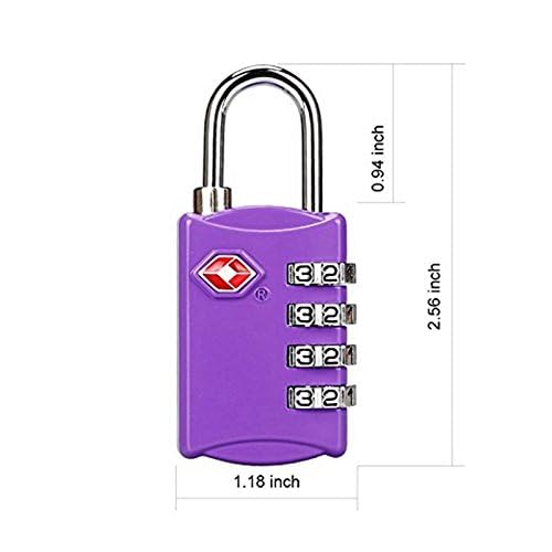 Smart Stuff - قفل أمتعة معتمد من إدارة أمن النقل الأمريكية، قفل رقمي رباعي الخانات من سبائك الزنك وكابل صلب حلقي، قفل سفر بدون مفتاح لشنطة الظهر والسفر والدولاب وخزانة الجيم وتأمين حقائب اليد بسوستة (أرجواني)
