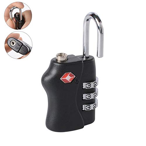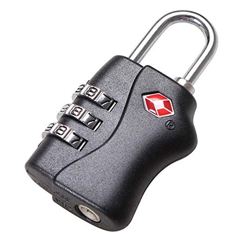 TSA - قفل الأمتعة المعتمد من تس اس ايه مع كلمة مرور مكونة من 3 أرقام لحقيبة الظهر حقيبة الجيم وخزانة المدرسة وحقيبة السف قفل بدون مفتاح - أسود