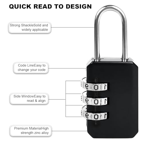 - تصميم واضح وسهل الاستخدام يتميز التصميم سهل الاستخدام بنافذة مرئية لكلمة المرور وأقراص سوداء عالية التباين بأرقام بيضاء، مما يجعل ضبط أو إعادة تعيين الرمز الخاص بك سريعًا وسهلاً. مثالية للسفر الخالي من الإجهاد والاستخدام اليومي مع أقفال الأمتعة أو خزائن صالة الألعاب الرياضية.