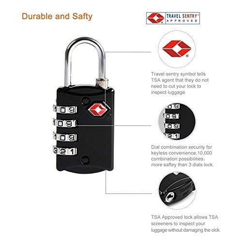 Generic - أقفال الأمتعة الآمنة معتمدة من إدارة أمن وسائل النقل، قفل شنطة الظهر لأمتعة السفر، شنطة السفر