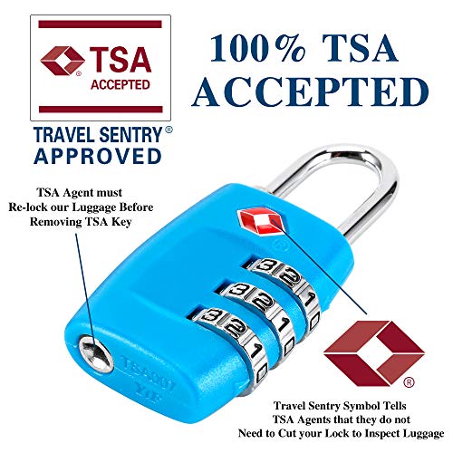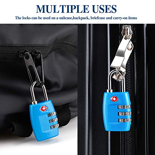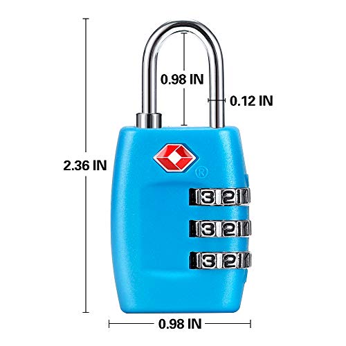 Cluckyu - أقفال شنط السفر TSA رقمية مركبة من 3 أرقام معتمدة لشنط السفر والامتعة (من 4 قطع) لون أزرق
