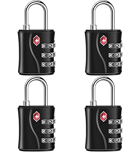 Generic - قفل شنط السفر TSA صلب مصنوع من خليط معدني من الزنك بكلمة سر من 3 أرقام لشنط الظهر والأمتعة، أسود (4 أقفال)