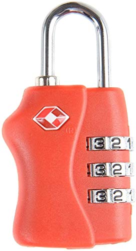TSA - تي اس اي قفل من خليط معدني من الزنك لحقيبة الظهر والامتعة مع قفل بكلمة مرور من 3 ارقام لشنط السفر والامتعة - احمر
