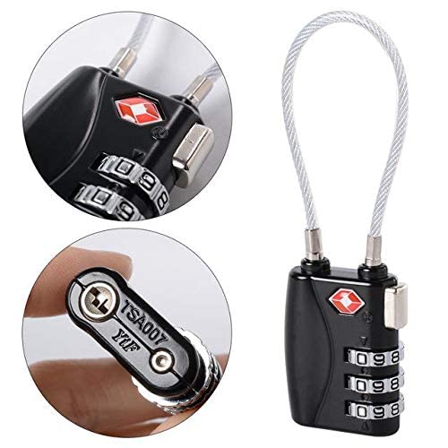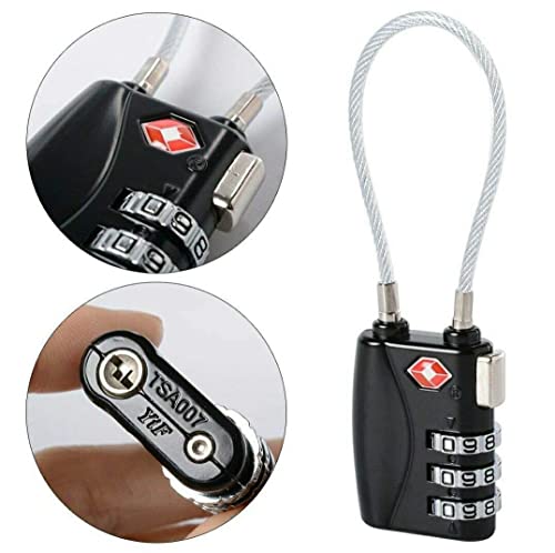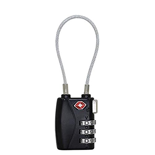 TSA - تي اس اي قفل سفر معدني مرن من خليط معدني من الزنك مكون من 3 ارقام بكلمة مرور لشنط السفر والامتعة (اسود)