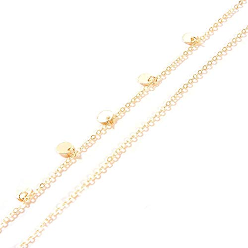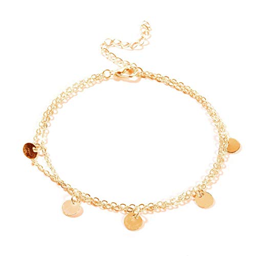 TseanYi - خلخال مزدوج الطبقات مرصع بخرزات دائرية من تي شين واي اي، مناسب للشاطئ للبنات والنساء, معدن