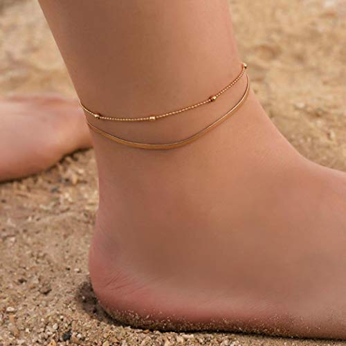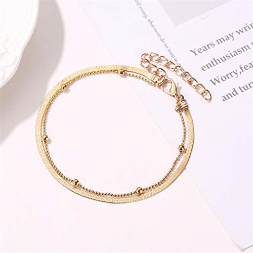 TseanYi - خلخال شاطئ بسيط وعصري مكون من طبقتين من الخرز وعظم الثعبان، مجوهرات قدم للنساء والفتيات، معدن،