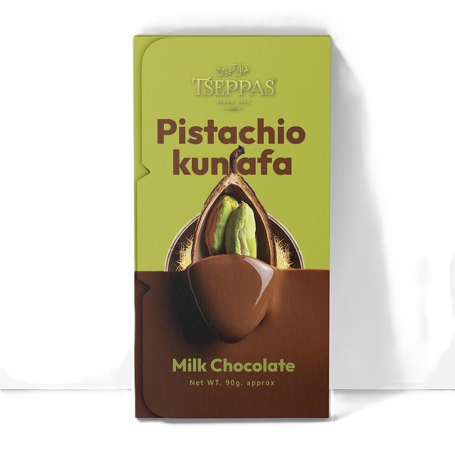 Tseppas - لوح شوكولاتة بالكنافة بالفستق والحليب من تسيباس، 90 جرامًا