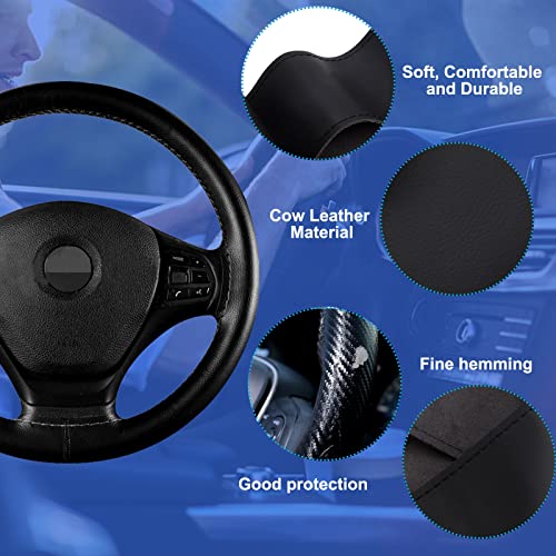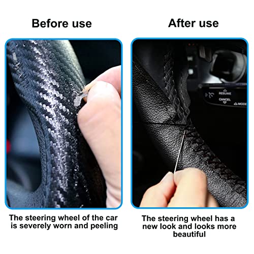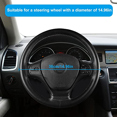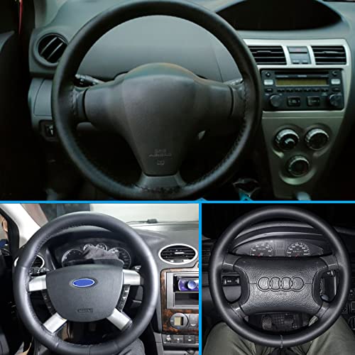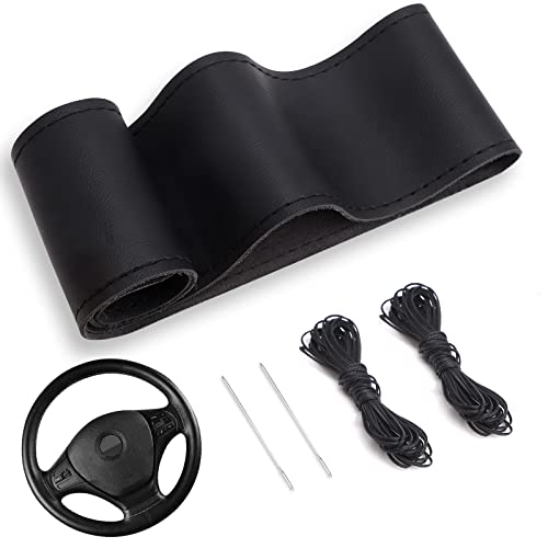 TSLBW - اغطية طارة دركسيون ذاتية الصنع مقاس 38 سم، غطاء جلد طارة دركسيون من الالياف، غطاء ملائم لطارة الدركسيون يدوي الصنع مع ابرة وخيط للشاحنات والسيارات