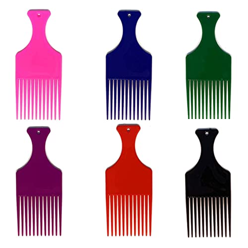 TSLRSA - مشط إفريقي من تي إس إل آر إس إيه - 6 قطع من مشط شعر أفريقي ناعم، مشط بلاستيكي بأسنان عريضة، أداة تصفيف الشعر للشعر المجعد الطبيعي (6 ألوان)