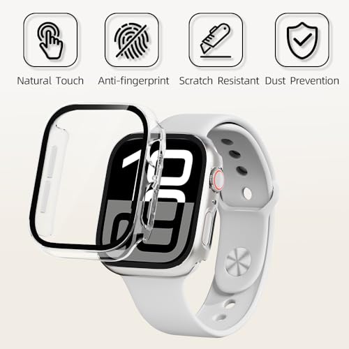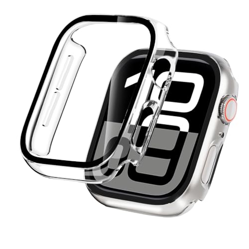 TSOGIA - جراب حماية صلب من البولي كربونات لساعة ابل سلسلة 10 مقاس 46 ملم مع شاشة حماية من الزجاج المقوى بدرجة صلابة 9، غطاء حماية كامل لساعة اي ووتش سلسلة 10 مقاس 46 ملم، شفاف، قطعتين