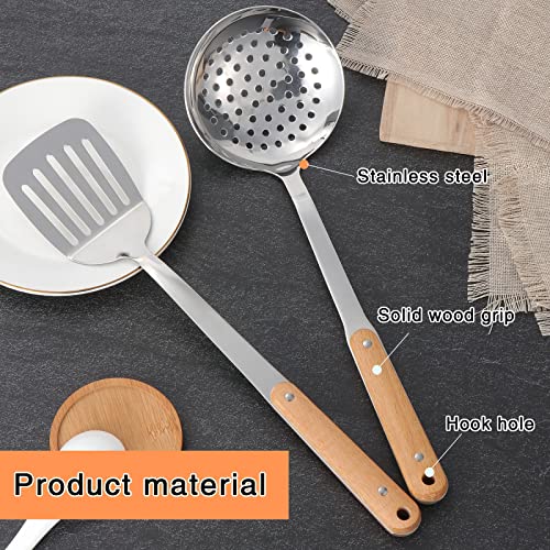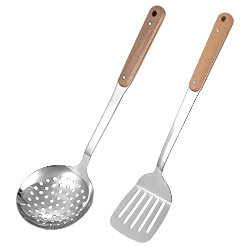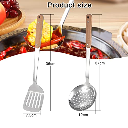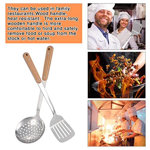 TsunNee - مجموعة أدوات تناول الطعام من الفولاذ المقاوم للصدأ 304، ملعقة سباتولا ووك ومغرفة شوربة مع مقبض خشبي طويل مقاوم للحرارة من تسونني، 2 قطعة