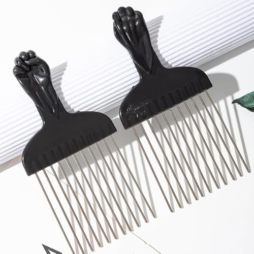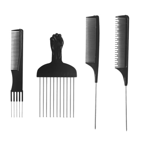 TSUOUKL - مشط شعر افريقي 4 قطع من تسوكل - مشط بلاستيكي اسود للشعر الافريقي لفك تشابك الشعر وتصفيفه واسنانه للرجال والنساء