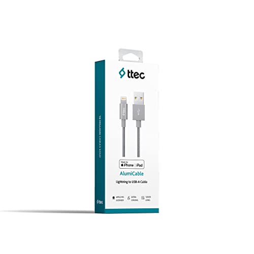 ttec - كابل USB لايتنينج للشحن ونقل البيانات حاصل علي اعتماد MFI من تي تيك، لون رمادي، مقاس 120 سم، موديل 2Dkm02Ug