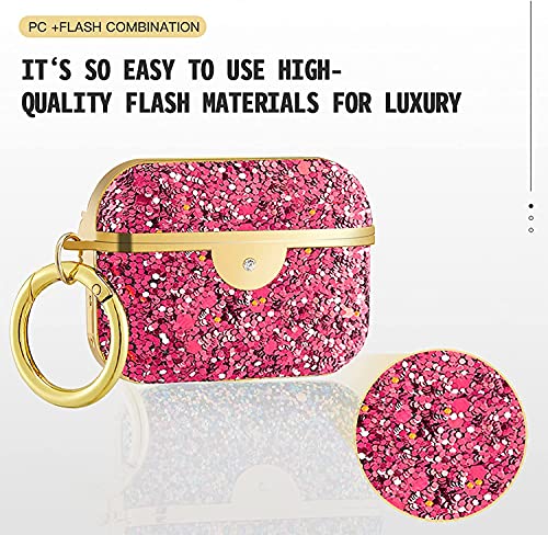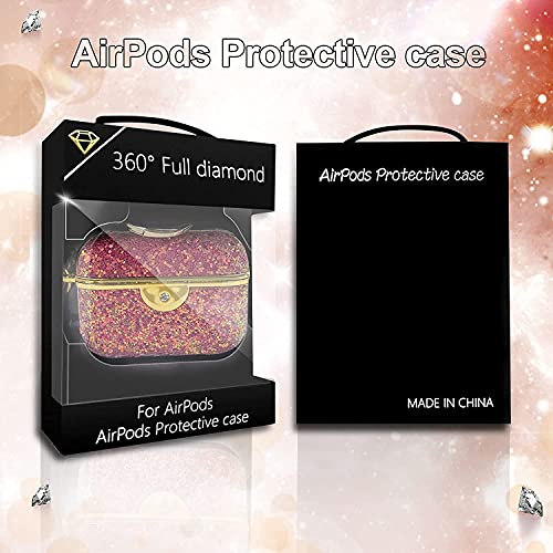 THEWHITESHOP - حافظة وقاية فاخرة لسماعات ايربودز 3 ذات تصميم كريستالي لامع مناسبة لحافظة شحن سماعات الاذن ايربودز برو مع سلسلة مفاتيح من ذي وايت شوب (احمر روز)
