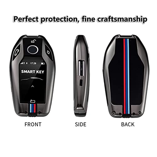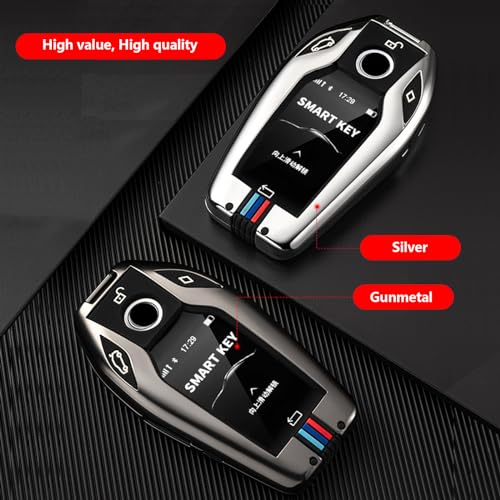 vol - 【تي تي كيو كيه】حافظة مفاتيح ذكية بسلسلة مفاتيح، غطاء معدني متوافق مع بي ام دبليو 1 3 4 5 6 7 سلسلة X3 X4 M5 M6 GT3 GT5، واقي مفاتيح مع سلسلة مفاتيح 【رمادي معدني】