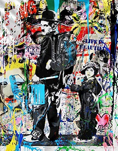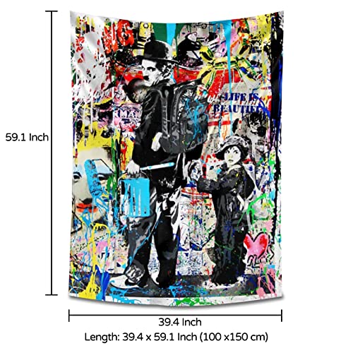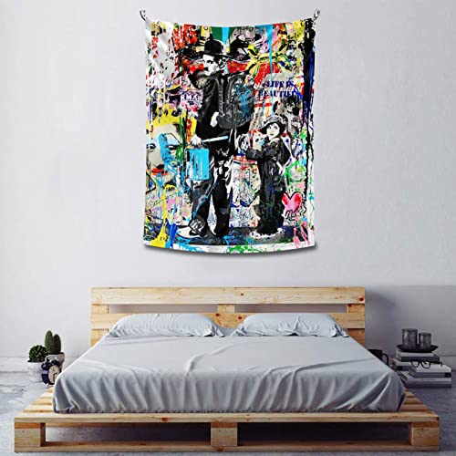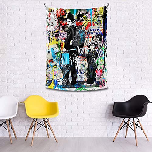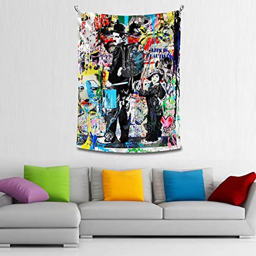 Tucocoo - بساط حائط قماش بانكسي ستريت جرافيتي لغرفة النوم بتصميم فني مستوحى من شخصية شابلي شابلن، بساط حائط معلق على الحائط، ديكور جيد لغرفة النوم، مصنوع من خامة ناعمة لا تتلاشى من توكوكو، مقاس 1.52 × 1.02 م