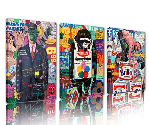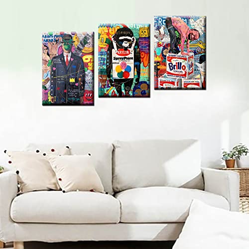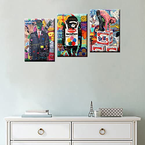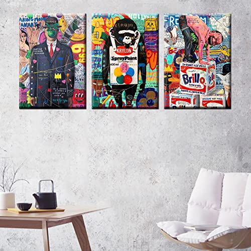 Tucocoo - تابلوه فني جرافيتي من القماش تعرض شوارع بانسكي لوحات فنية عصرية ممتدة بتصميم تجريدي ملون جاهزة للتعليق بإطار الخشب لديكور المنزل توكوكو 3 قطع عرض 1.0 متر × ارتفاع 50.8 سم