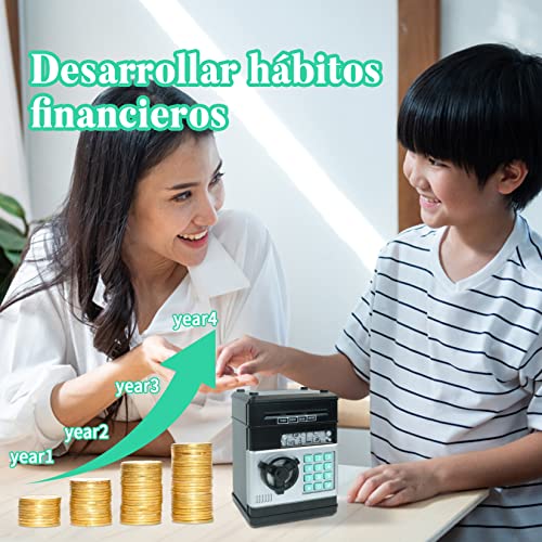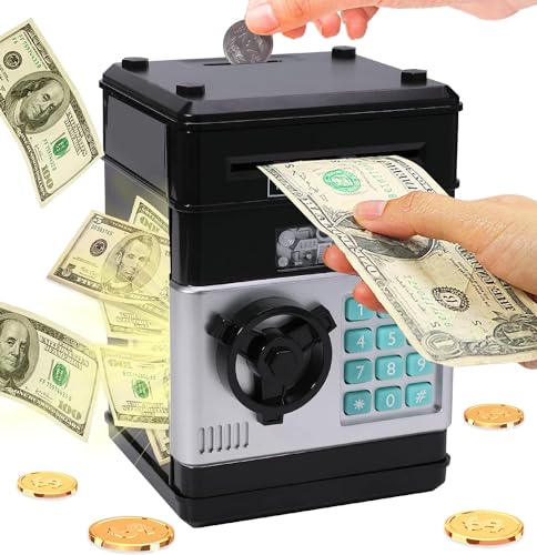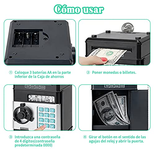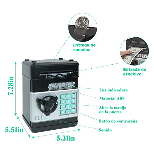 - حصالة موسيقية إلكترونية للأطفال، مقاس العبوة: 13.5*12.3*19.5 سم؛ وزن العبوة: 650 جرام؛ السعة: يمكن تخزين العملات المعدنية أو الفواتير؛ البطارية: 3 × بطاريات AA (غير متضمنة)