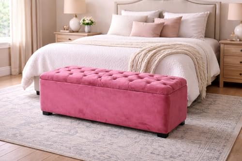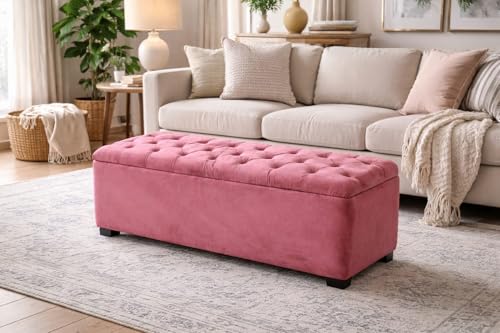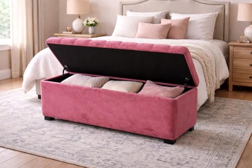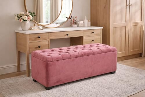 Generic - مقعد تخزين منجد مع درج مخفي، مسند منجد مخملي بينك، 120 × 40 × 50 سم، لغرفة النوم وغرفة المعيشة