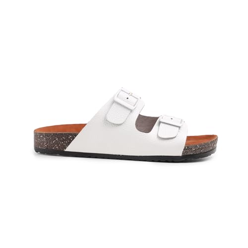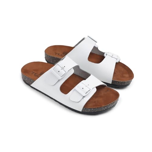 Generic - صندل جلد شمواه بابزيم مزدوج من توجو، مقاس 41-45 (ابيض، 43)