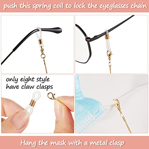 - تشكيلات رائعة: تحتوي عبوتنا على 6 قطع من أربطة الكمامات بأشكال وألوان مختلفة، و6 أزواج (12 قطعة) من خطافات الأذن المانعة للانزلاق والتي تحمي النظارات من السقوط العرضي وبالتالي تحميها من التلف أو الضياع. مجموعة متكاملة وكمية كافية لتلبية احتياجاتك اليومية.