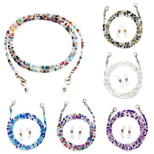 Tuklye - أربطة تثبيت الكمامات أمزويا، أربطة مزينة بالخرز، سلاسل نظارات ملونة مع مشبك، قلادة مصنوعة يدويًا، حامل كمامة مضاد للضياع مع مشابك تثبيت حول الرقبة من توكلي، مجموعة مكونة من 6 قطع