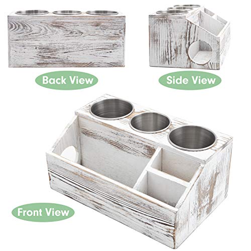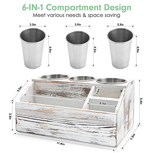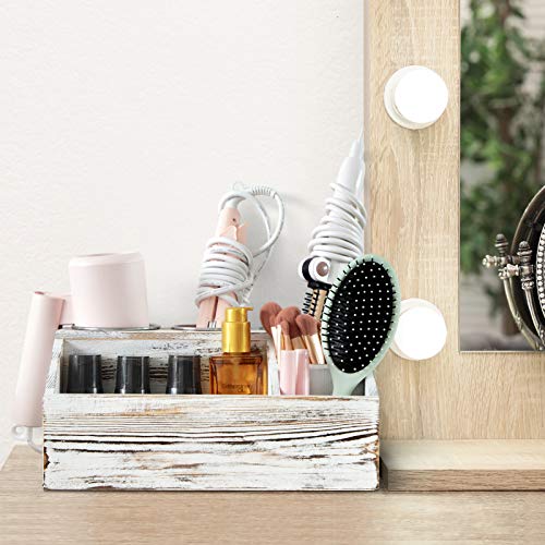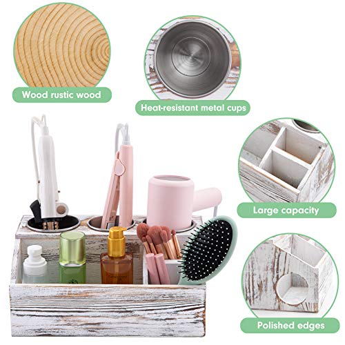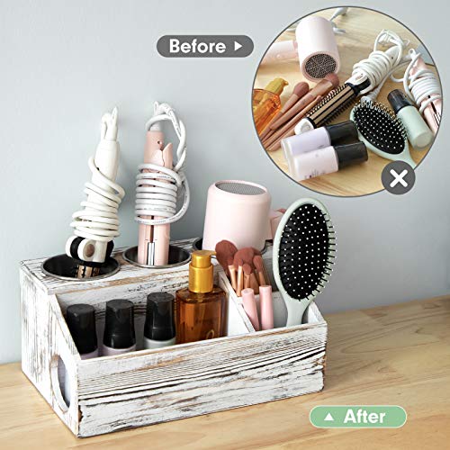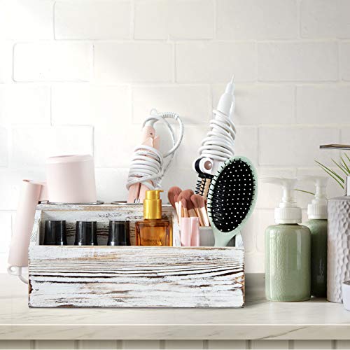 TUKUOS - توكوس منظم ادوات الشعر الخشبي حامل مجفف حمام عتيق لسطح الطاولة لمكواة التجعيد مكواة مسطحة منفاخ - 6 مساحات تخزين لاكسسوارات التصفيف ابيض أبيض ريستيك مستطيلي
