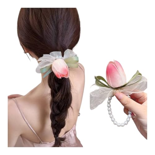 Generic - زينة شعر زهور التوليب مع اللؤلؤ، إكسسوار شعر رومانسي، أزهار اصطناعية وردية وزرقاء مع شريط أورجانزا، مشبك شعر للحفلات والمناسبات الخاصة متعدد الون قطع 1