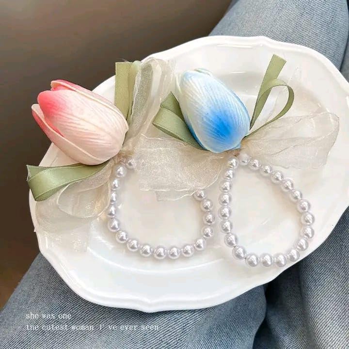 - حجم مثالي: يتميز بحجم مناسب مع أزهار توليب بارزة وسلسلة لؤلؤ أنيقة للإطلالة المثالية