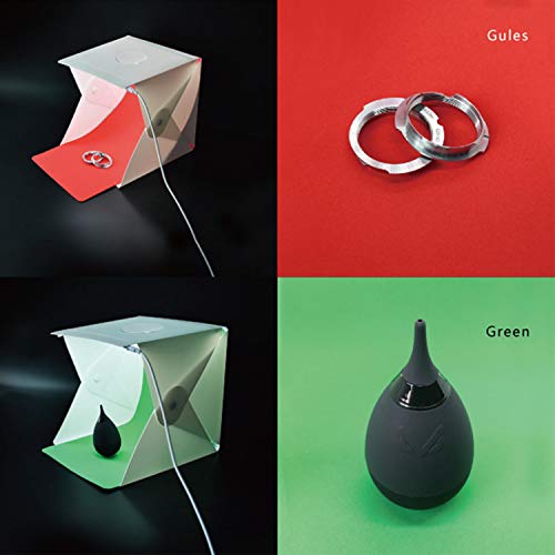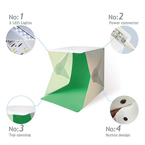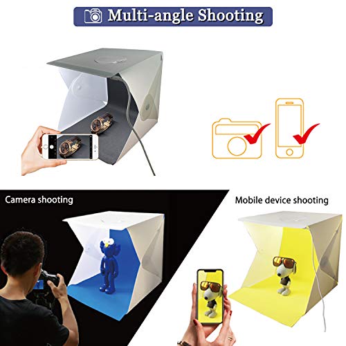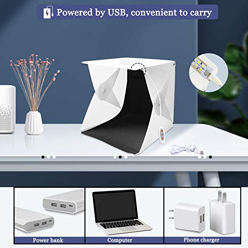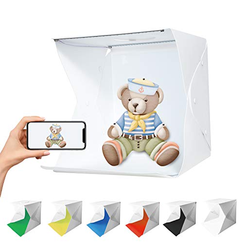 Tumax - صندوق إضاءة صغير محمول للتصوير الفوتوغرافي من توماكس، للصور مع شريطي إضاءة ليد، قابل للطي بدرجة سطوع قابلة للتعديل مع 6 خلفيات ملونة لتصوير الألعاب والمجوهرات والخواتم، 20×20 سم