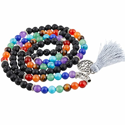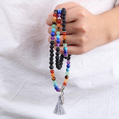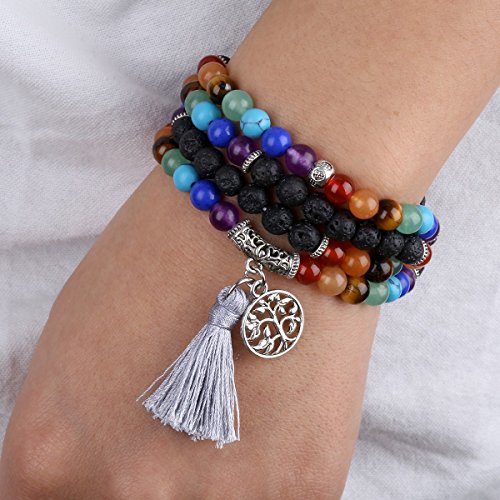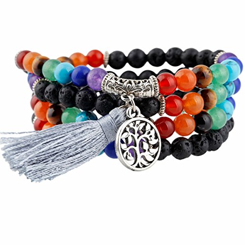 TUMBEELLUWA - تومبيلوا سوار خرز متعدد الطبقات لليوجا والتامل مع دلايات من خليط معدني، حجر لافا روك/ شرابة، حجر،، للنساء، للبالغين من الجنسين، للرجال