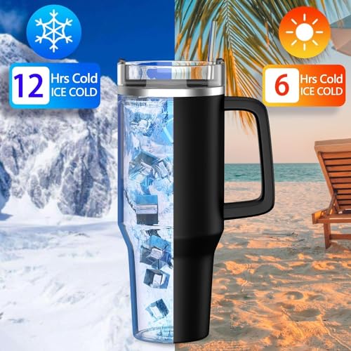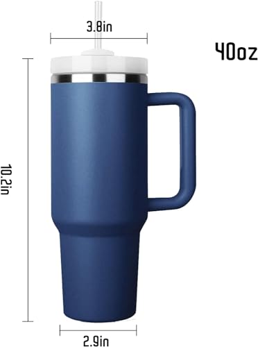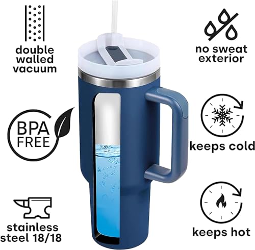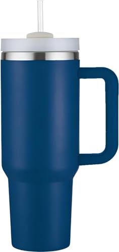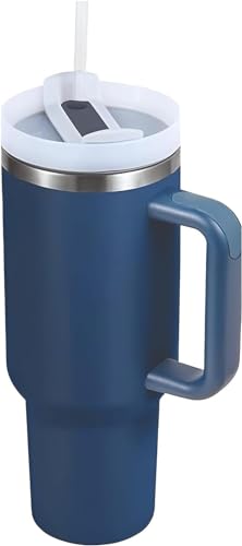 Matiko - كوب بسعة 40 اونصة مع مقبض وغطاء ماصة معزول وقابل لاعادة الاستخدام من الستانلس ستيل مناسب للسفر والقهوة المثلجة والمشروبات الساخنة والباردة 40 اونصة مع مقبض (ازرق دينيم)