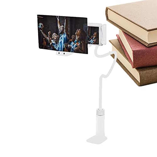 Tumotsit - مكبر شاشة موبايل 8/12 بوصة مع حامل مرن من توموتسيت - تكبير وإسقاط ثلاثية الأبعاد عالية الدقة لتوسيع عَرض الشاشة أكسسوار للموبايلات لعرض الأفلام والفيديوهات والمكالمات الجماعية أبيض اكريليك