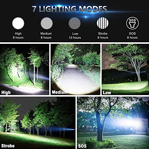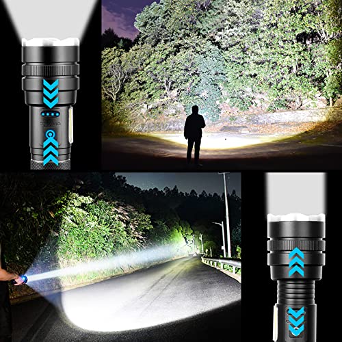 - 【مصباح يدوي فائق السطوع 10000 لومن】 مصباح يدوي عالي السطوع يستخدم شريحة XHP90 LED متطورة ومتينة. مصباح يدوي 10000 لومن له مسافة شعاع قصوى تبلغ 3200 قدم، مما يوفر لك نطاق واسع