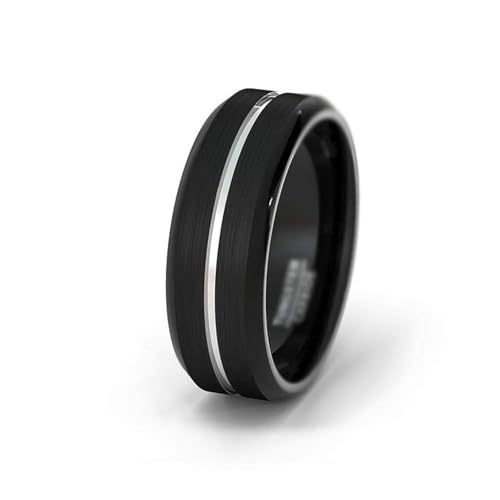 Other - دبلة تنجستين للرجال عالية الصلابة ضد الصدأ و الخدش والماء مقاس 8 US -اسود فضي
