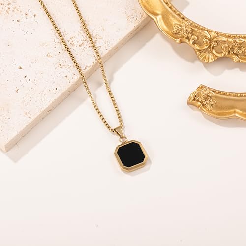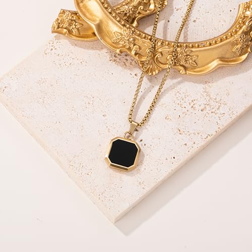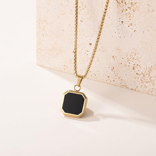 TUNGSTORY - عقد مطلي بالذهب عيار 14 قيراط من تونجستوري من العقيق اليماني الاسود والفيروزي والمالاكيت واللازورد وعين النمر للرجال والنساء من الستانلس ستيل بتصميم مربع/مستطيل، هدية مجوهرات