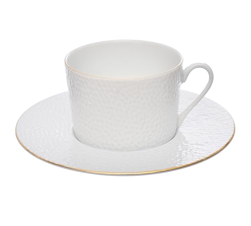 Tunisie - فنجان وطبق شاي بورسلين مزين بحواف ذهبية ومناسب للاستخدام المنزلي وفي المطاعم والفنادق من تونسي مارتيلو بسعة 220 ملليلتر تونس