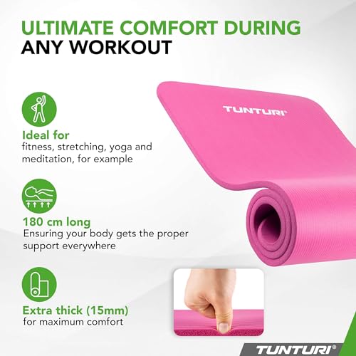 Tunturi - بساط اللياقة البدنية NBR، مضاد للبكتيريا بلون بينك من تونتوري