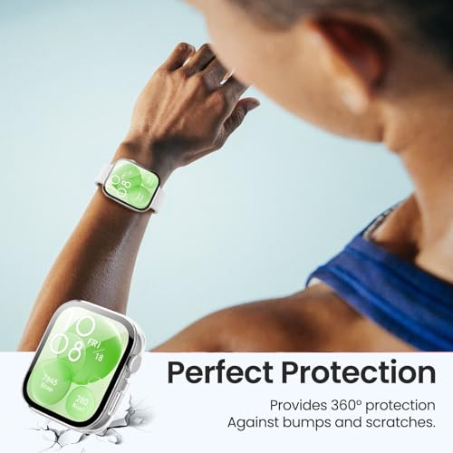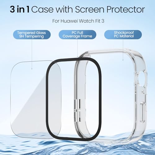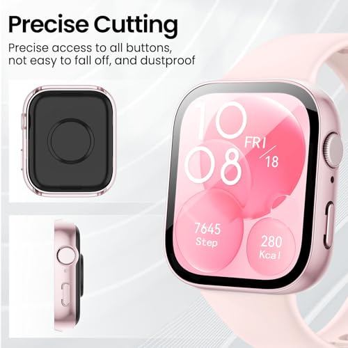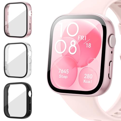 Tuocal - جراب حماية من البولي كربونات من توكال متوافق مع ساعة هواوي فيت 3، اطار صلب من البولي كربونات مع واقي شاشة من الزجاج المقسى، جراب حماية بتغطية كاملة مقاوم للخدش لساعة هواوي فيت 3 من 3 قطع