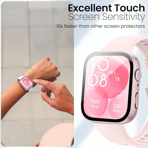- جودة عالية: واقي شاشة ساعة هواوي فيت 3 مصنوع من زجاج مقوى بدرجة صلابة 11 مقاوم للخدش. وضوح عالي الدقة. لمسة عالية. يغطي واقي الشاشة المصنوع من مادة البولي كربونات والبولي إيثيلين تيرفثالات حافة الساعة وسطحها، مما يوفر حماية ممتازة. إنها صلبة وناعمة ولن تخدش يديك.
