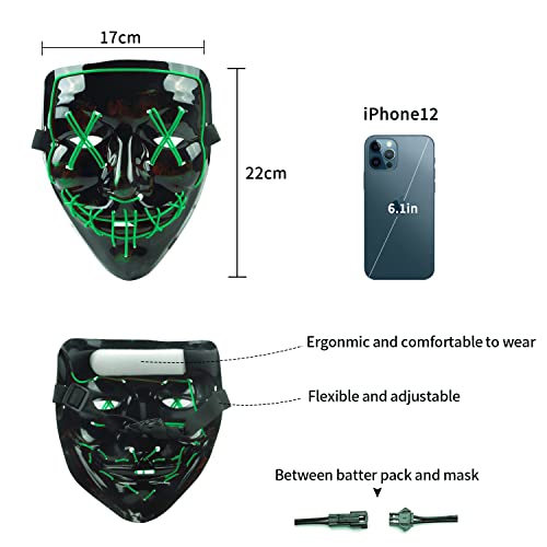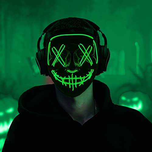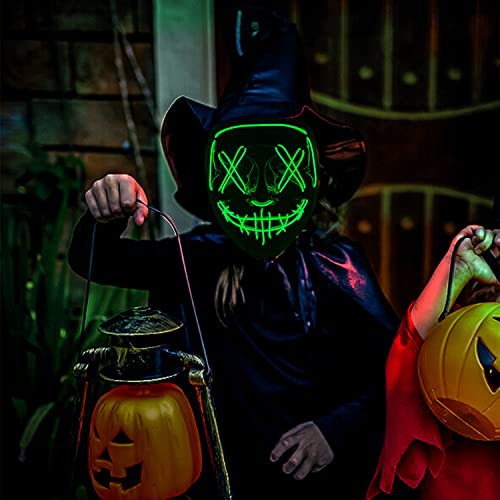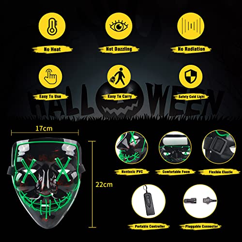 TUOTSEP - قناع هالوين مخيف من توتسيب، قناع مرعب بإضاءة ليد يتوهج في الظلام مع 3 أوضاع إضاءة لأزياء الهالوين التنكرية وكرنفال، زي الحفلات التنكرية